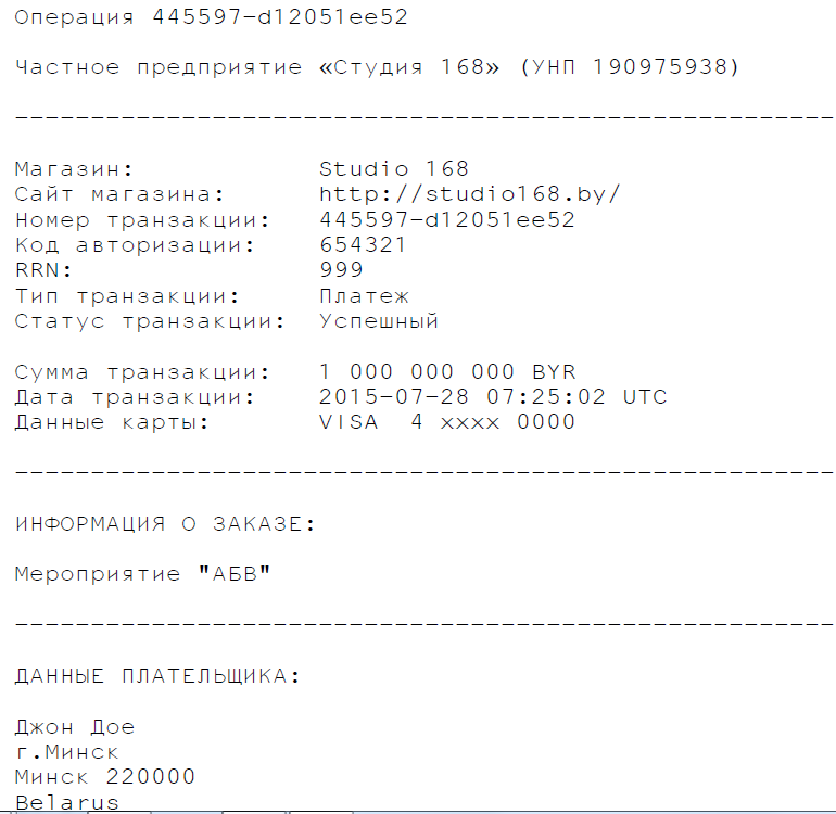 Обращаем ваше внимание, что после проведения платежа на указанный вами электронный адрес придет подтверждение оплаты. Просим вас сохранять данные оплат.